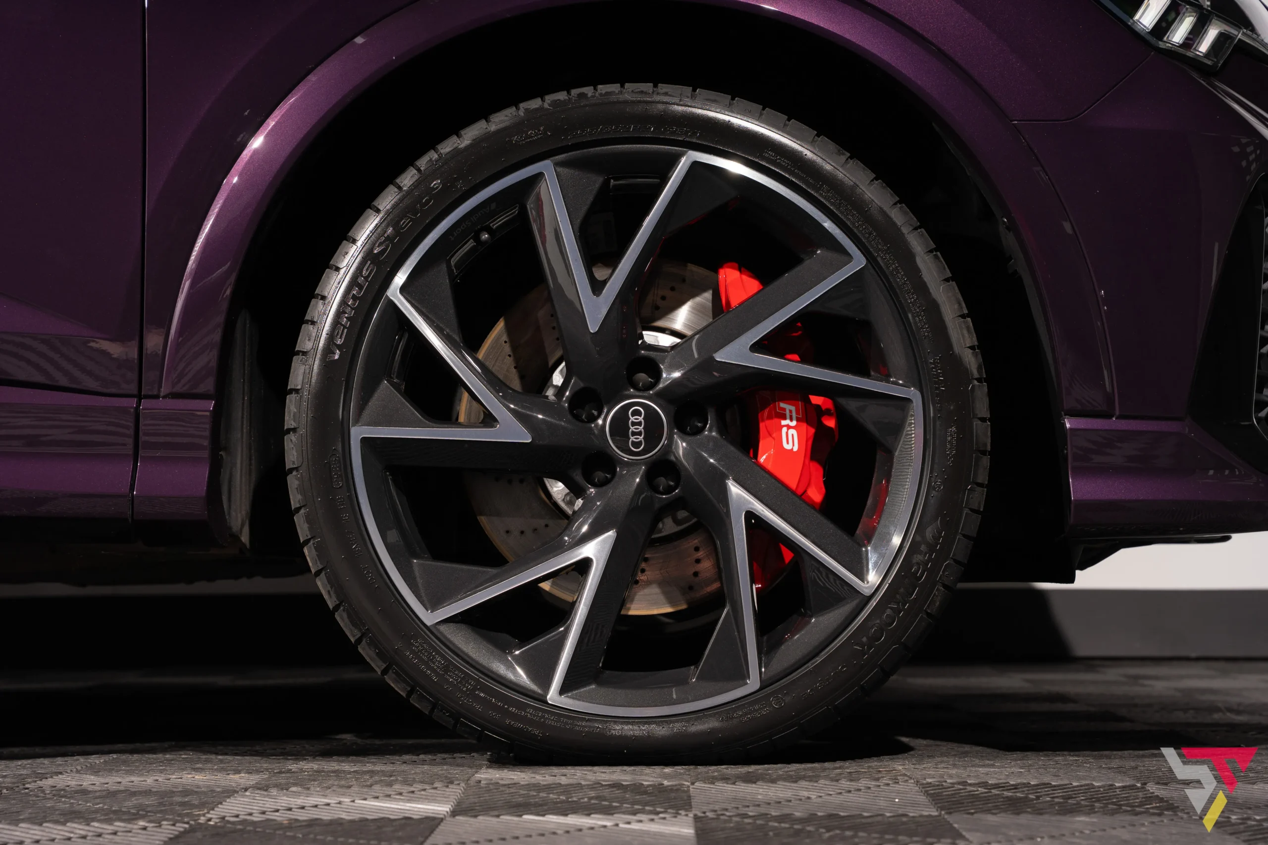 Merlin Purple is one of Audi Exclusive’s most captivating paints, deep and expressive with a pearlescent glow that shifts beautifully in changing light. Red RS calipers, carbon-fibre mirror caps and the gloss-black exterior styling package enhance the already purposeful stance of the RSQ3.